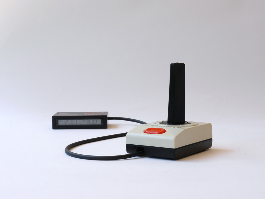 The Commodore joystick that was released with the C64 was an original design compared to their previous one for VIC20 that was almost a copy of the well known Atari joystick. It has the fire button in the center so that it could be used by left-handed people as well. This is one of the sticks that appear in the nightmares of older gamers. Unresponsive, uncomfortable and featuring an awful fire button. They use a metal contact that got pushed down on the print as you move the stick and these broke quite frequently. They had to be opened and fixed quite often.
