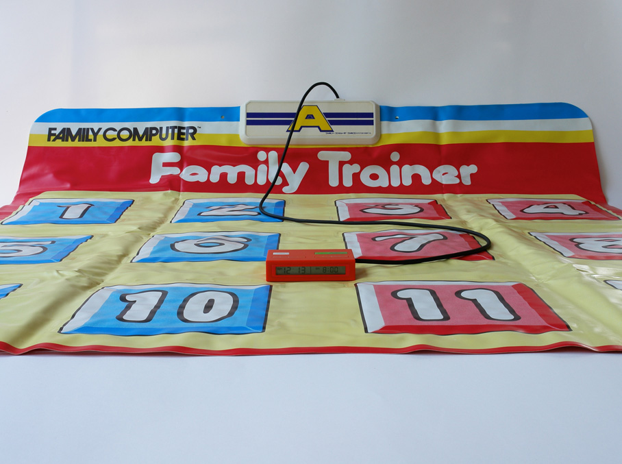 The Power Pad (known in Japan as Family Trainer, and in Europe and briefly in the United States as Family Fun Fitness) is a floor mat game controller for the Nintendo Entertainment System. It is a gray mat with twelve pressure-sensors embedded between two layers of flexible plastic. It was originally developed by Bandai. Bandai first released the accessory in 1986 as the Family Trainer pack for the Famicom in Japan, and later released in the United States under the name Family Fun Fitness. The accessory is laid out in front of the video display for various games, generally plugged into the second controller port, with players stepping on the large buttons to control gameplay. There are two illustrated sides to the pad: Side A, which is rarely used, has eight buttons, while side B has twelve buttons numbered from 1-12.