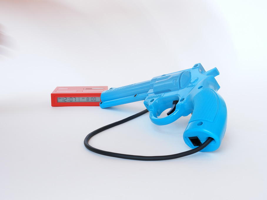 Set alarm on/off: Gun trigger (hold 3 seconds)