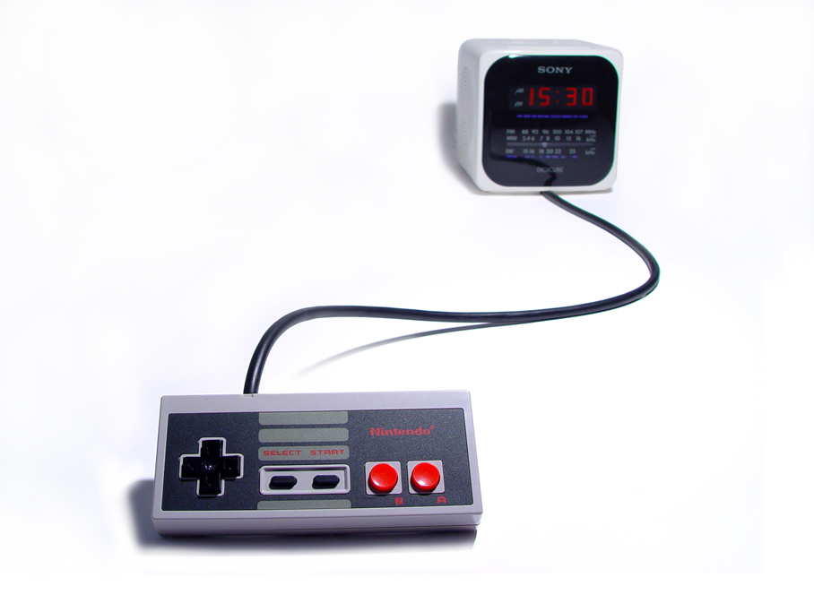 These two devices are both great 80s pop icons and best selling products in their respective markets. The Nintendo NES was estimated to be installed in one out of three American households. The alarm, time and sleep set up functions can be activated using the controller pad.
