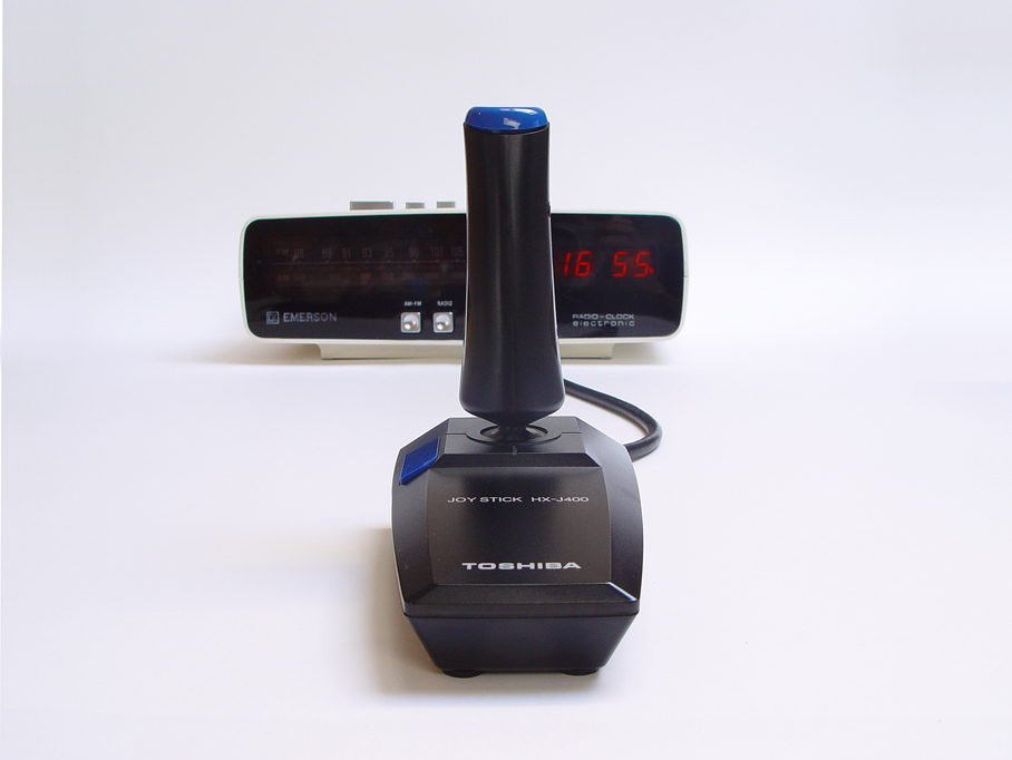 Emerson Radio Corporation, founded in 1948, is one of the US largest volume consumer electronics distribu-tors with a recognized trademark in continuous use since 1912. It is one of the oldest and well-respected names in the consumer electronics industry. This retro-stylish radio clock has been restored with new electronics and hard- wired to a Japanese analog joystick.
