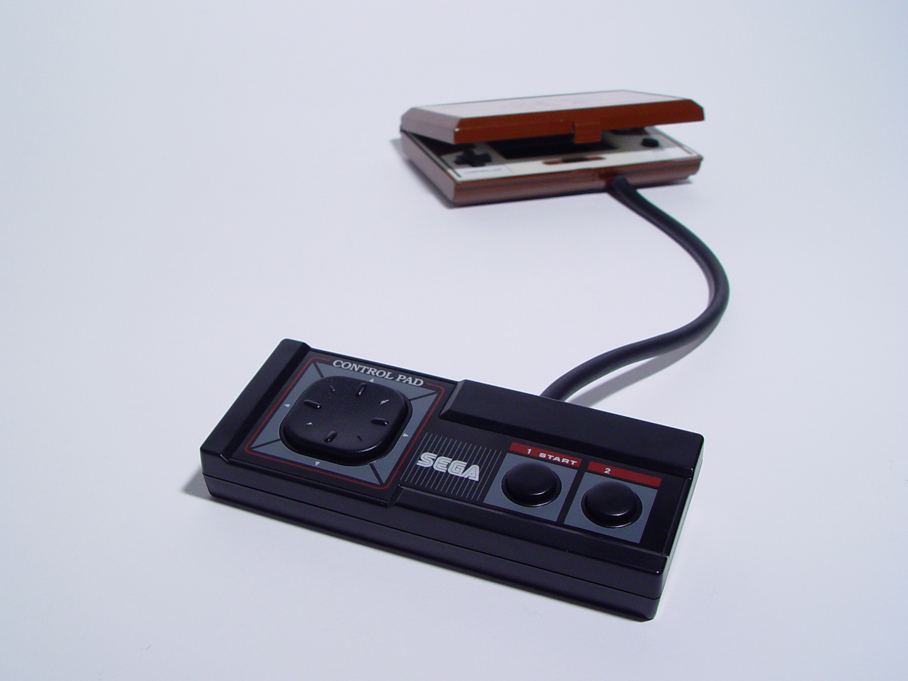 The Game & Watch series was a line of approximately 59 handheld electronic games made by Nintendo and created by Gunpei Yokoi from 1980 to 1991. Donkey Kong single-handedly transformed Nintendo from a small Japanese toy company to later become one of the biggest video game companies in the world. Donkey Kong II is the sequel to Donkey Kong. More than one million units were sold worldwide and this one is hard-wired to a original Sega Control Pad which came whith the Sega Master System back in 1986 to try to beat the Nintendo monopolio in the US.